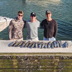 Top Predator Adventures Photo Album is a collection of our guests in action. The Fish photos include Black Drum (Also Called Drum, Drummer), Bluefish (Also Called Elf, Tailor, Shad), Southern Flounder (Also Called Flounder, Plie ), Redfish (Also Called Red Drum, Channel Bass, Spottail Bass), Blacktip Shark (Also Called Shark, Blacktip Shark ), Bonnethead Shark (Also Called Bonnet Shark, Bonnetnose Shark, Shovelhead Shark), Bull Shark (Also Called Cub Shark, Ground Shark, Shark ), Sheepshead (Also Called Convict Fish, Sheephead ), Sea Trout (Also Called Speckled Trout, Spotted Sea Trout). The Fishing photos are taken in Atlantic Ocean, Charleston Harbor, Folly Beach, Folly Island Channel, Mt. Pleasant